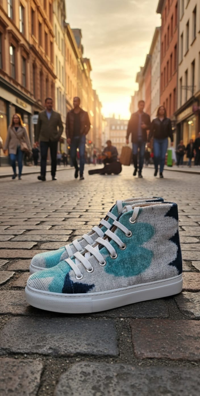 Sneakers de terciopelo Ikat turco y su interior de piel. La suela es de goma muy ligera. Modelos exclusivos elegidos y seleccionados los estampados por Coco India y hechos únicamente para nuestra firma.