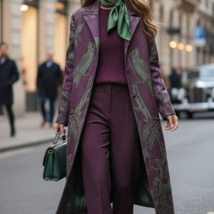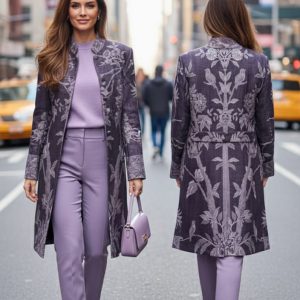 ABRIGO MIDI EN SEDA EN COLOR MORADO CON FORRO EN ROSA
