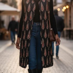 CHAQUETA BORDADA CRUZADA EN NEGRO