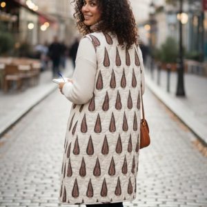 CHAQUETA CORTA ALGODÓN REVERSIBLE BLANCA BÚHOS NARANJA