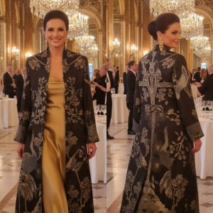 ABRIGO LARGO LANA CACHEMIRA Y LANA NEGRO Y DORADO