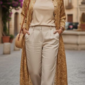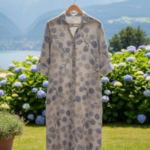 CAMISERO DE SEDA SATINADA, FONDO BEIGE CON RAMITAS ARBOL