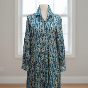 CAMISERO DE SEDA SATINADA EN AZUL CON GUIRNALDAS EN VARIOS COLORES
