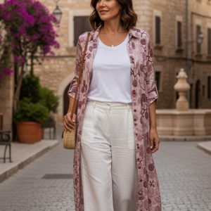 CAMISERO DE SEDA SATINADA EN TONOS BURDEOS CON DIBUJO DE HOJITAS