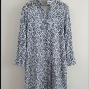 CAMISERO DE ALGODÓN, FONDO BLANCO Y DIBUJO EN AZUL MARINO