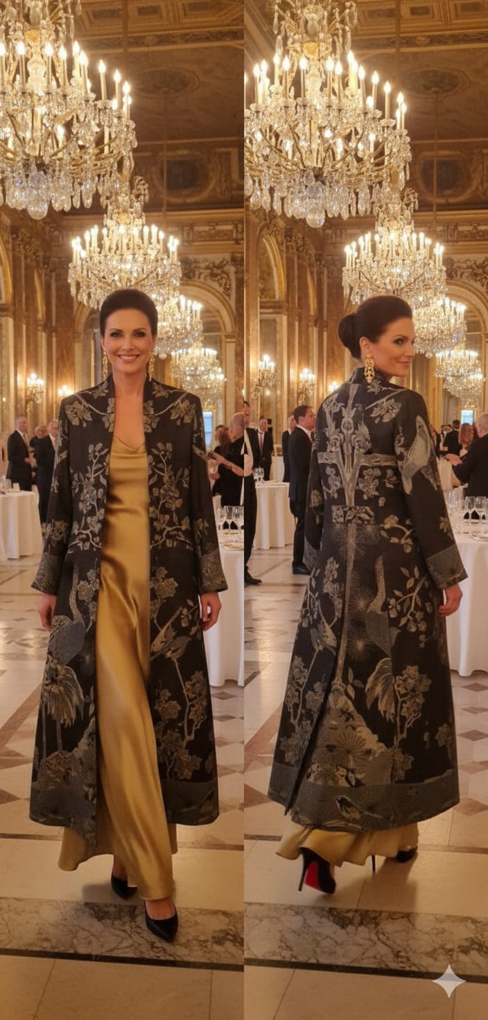 ABRIGO LARGO LANA CACHEMIRA Y LANA NEGRO Y DORADO