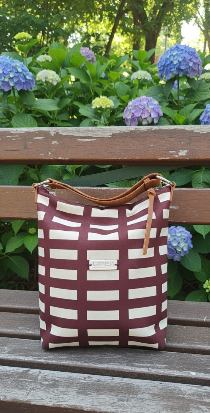 Bolso terciopelo en rayas en color burdeos y blanco, hechos a mano en España, concretamente en Donostia. Se cierra mediante cremallera y en su interior lleva un bolsillo cerrado también con cremallera. El asa es de pasamanería regulable mediante hebilla, de esa forma podrás llevar tu bolso de la forma que te resulte mas cómoda, y puedes combinarlo con cualquier otra asa que desee, ya que es fácilmente desmontable.