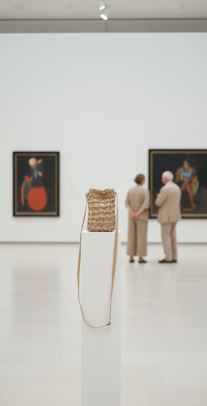 Bolso pequeño elaborado en seda satinada, con un acabado suave y delicadamente luminoso. Está envuelto en una red hecha con lazos anudados, lo que le da un aspecto artesanal y muy original. Ligero, femenino y con un toque bohemio sofisticado, es perfecto para llevar lo esencial y aportar personalidad a cualquier look, desde el diario hasta una ocasión especial.