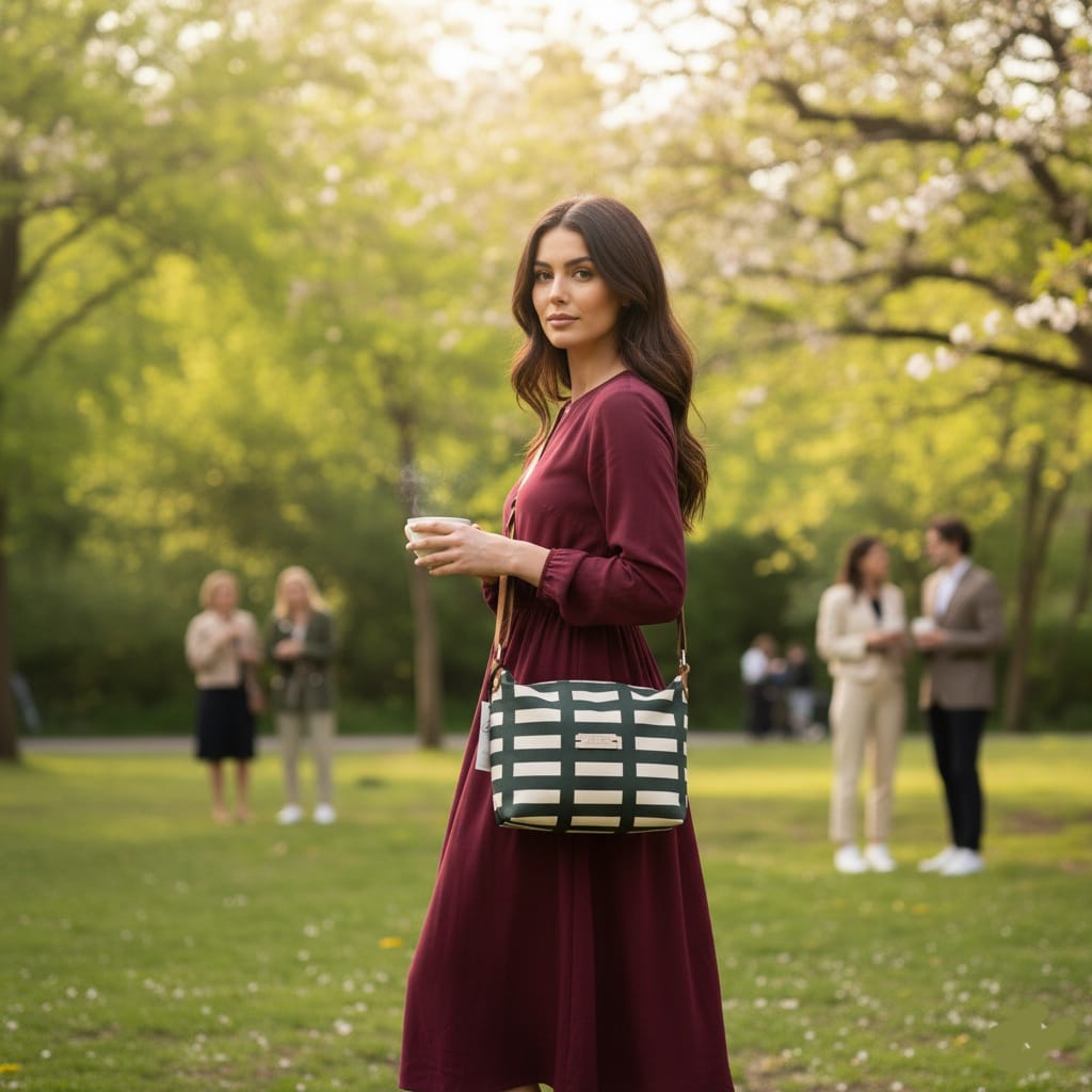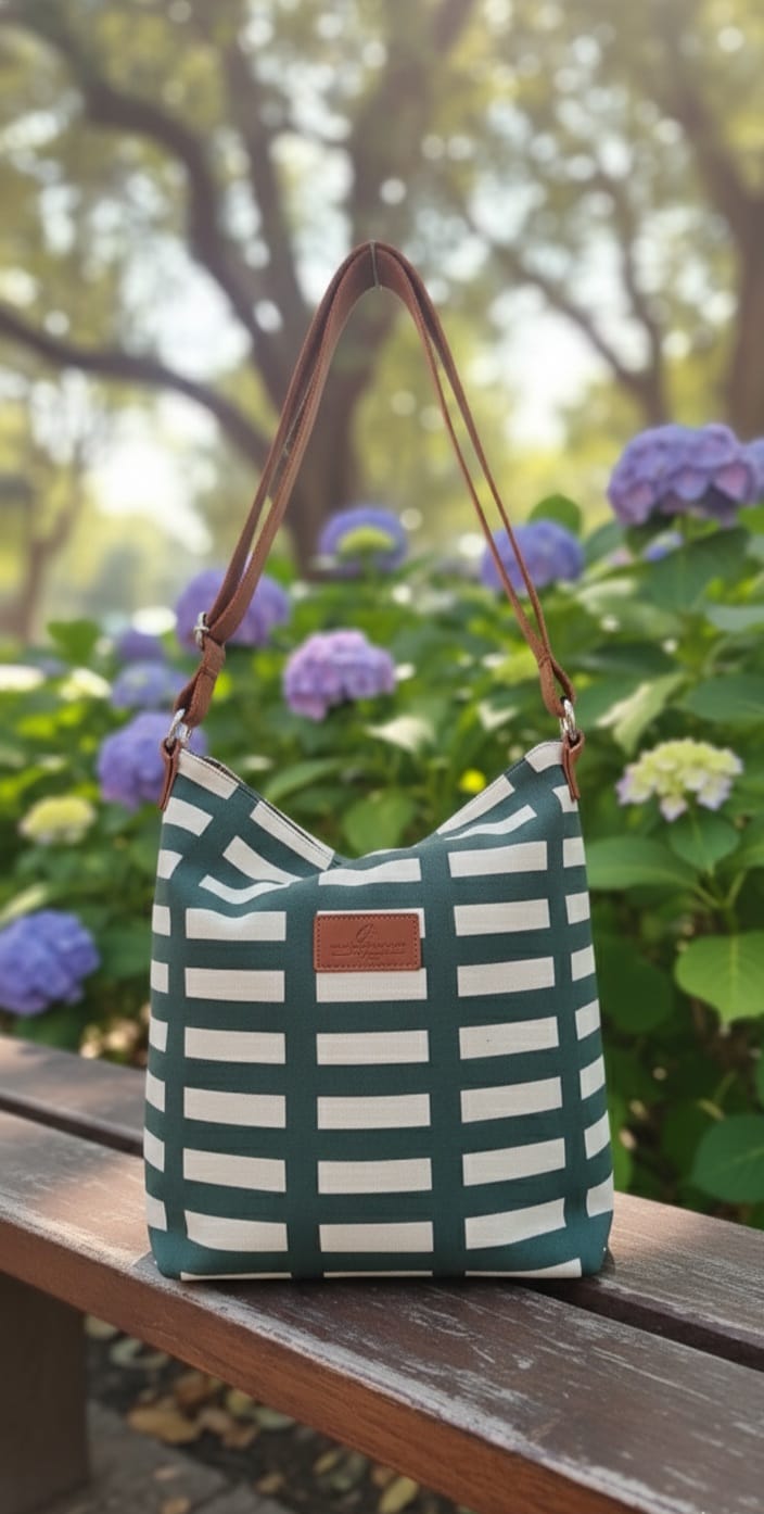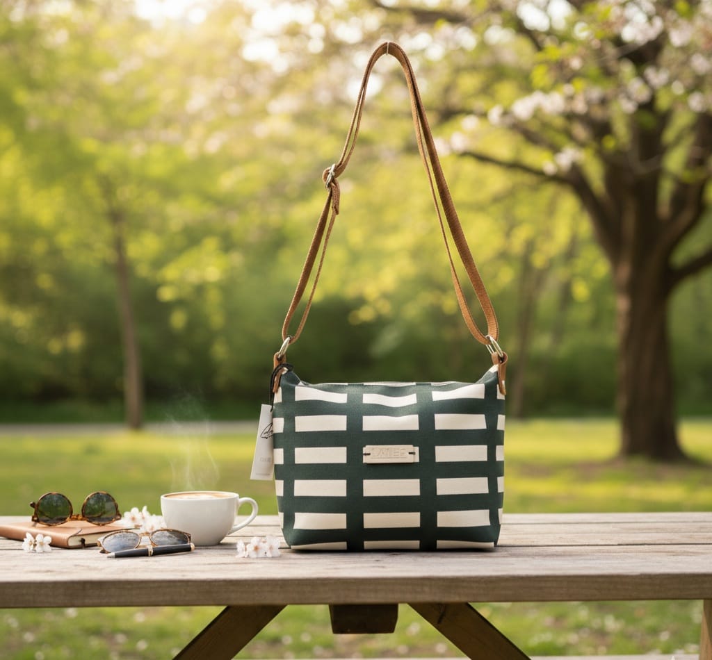 BOLSOS TERCIOPELO RAYAS VERDE Y BLANCO