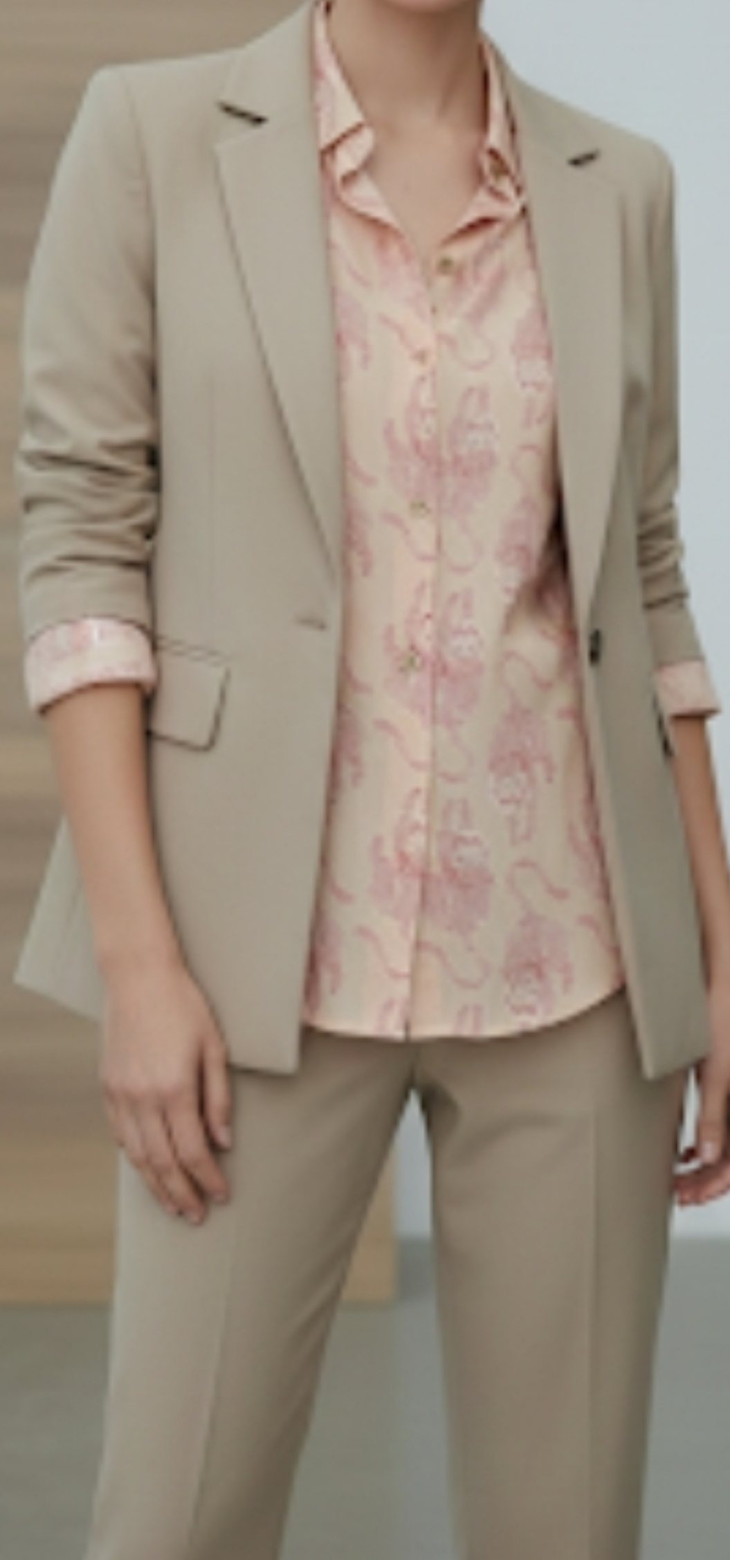 CAMISA DE ALGODÓN, DE MANGA LARGA, COLOR SALMÓN CON TIGRES EN ROJO
