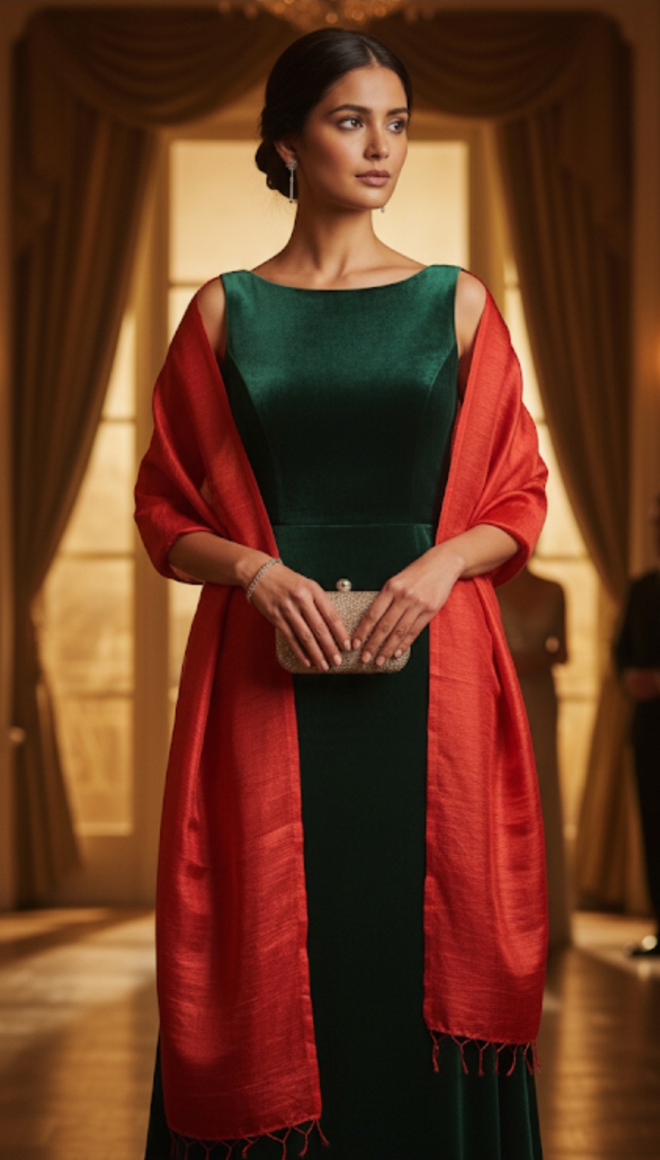 CHAL DE SEDA SALVAJE EN COLOR ROJO