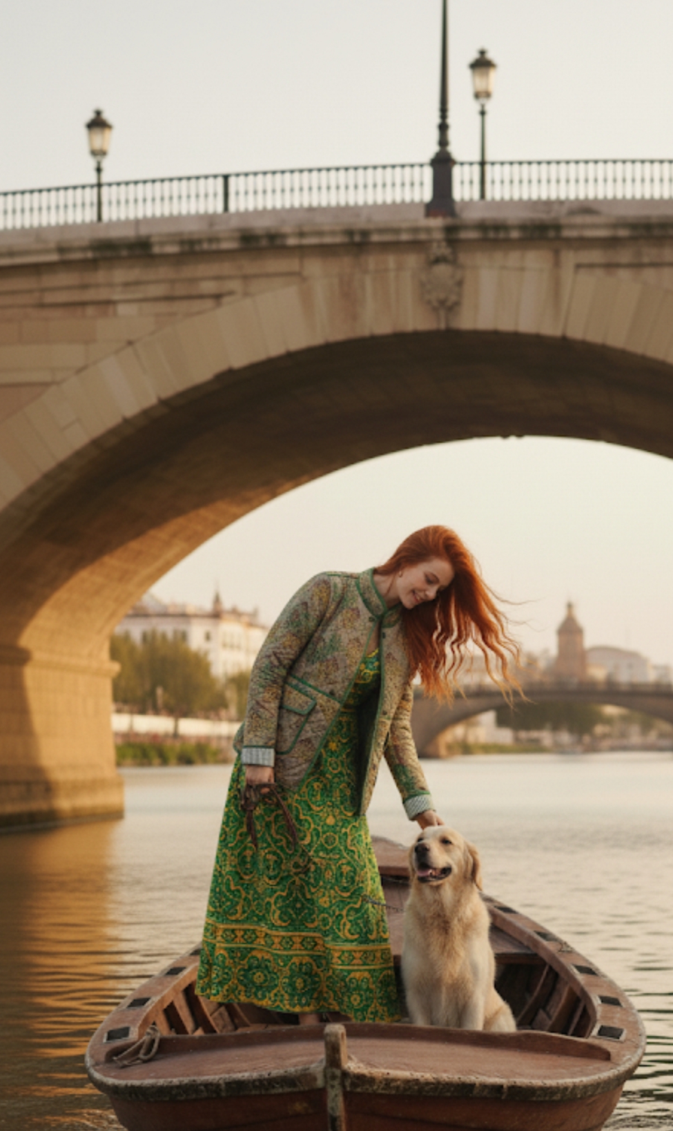 Chaqueta corta de algodón reversible ligera, de color verde con dibujos de tigres y bordes de color azul verde. Consta de dos bolsillos en el anverso y el reverso es de rayas de color blanco y negro. Diseñadas en exclusividad por Coco India. Exclusivas, hechas y confeccionadas bajo nuestras instrucciones en medidas y elección de los estampados.