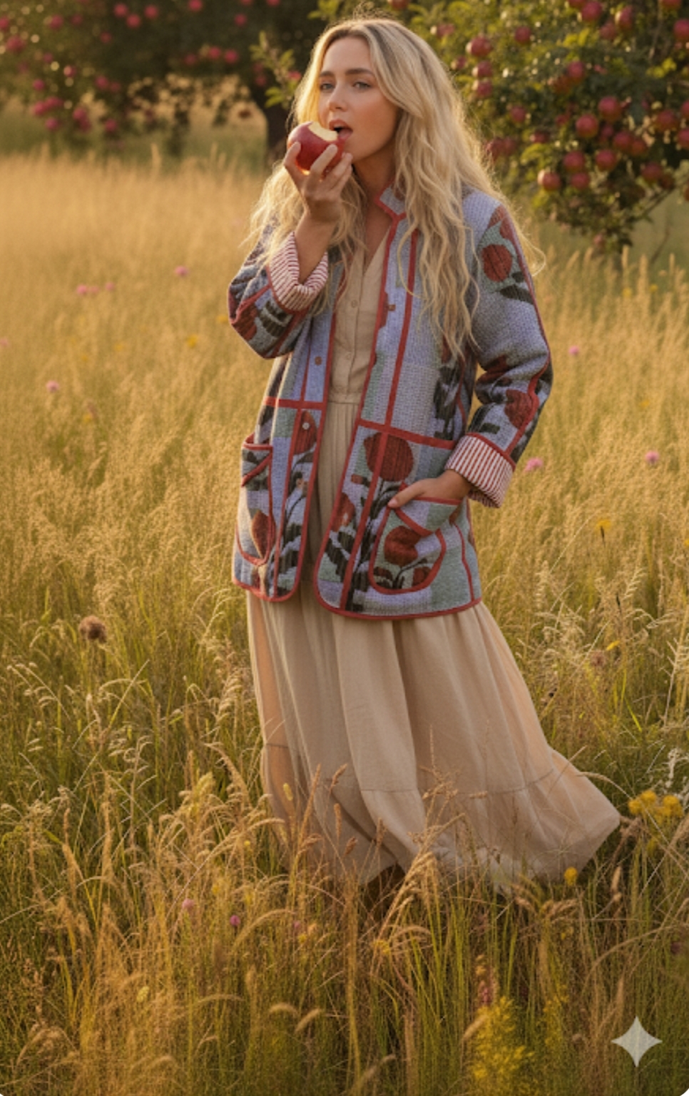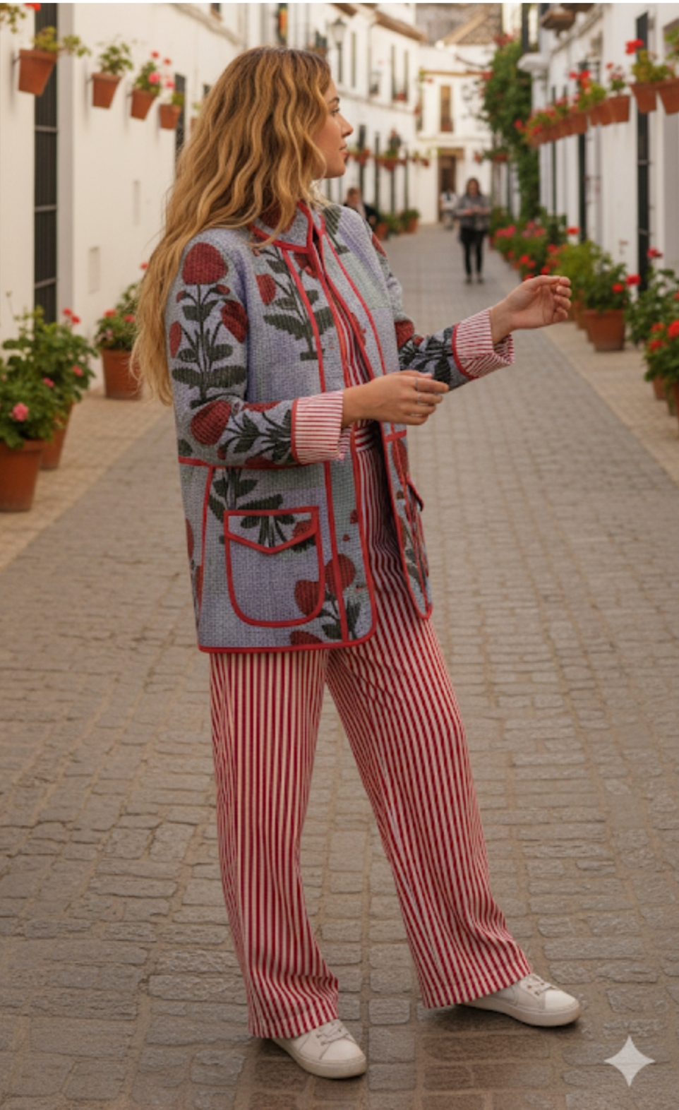 CHAQUETA DE ALGODÓN NARANJA Y FLORES