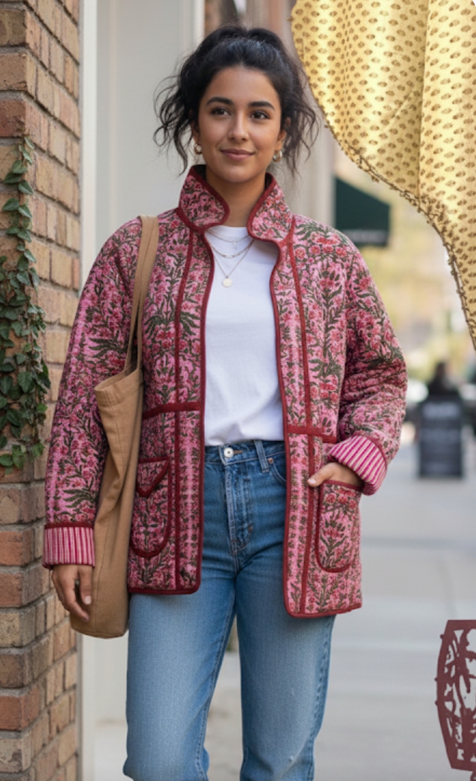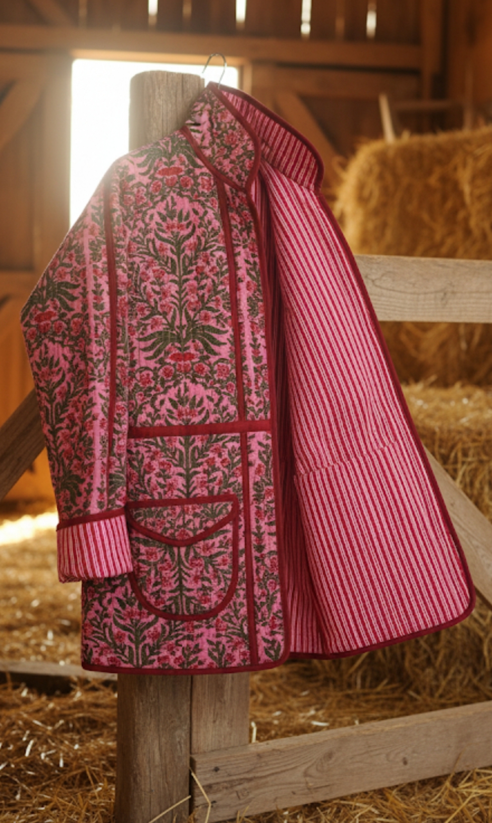 CHAQUETA DE ALGODÓN ROSA CON FLORES DE COLORES