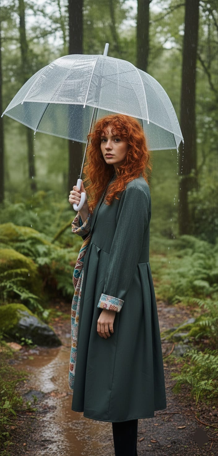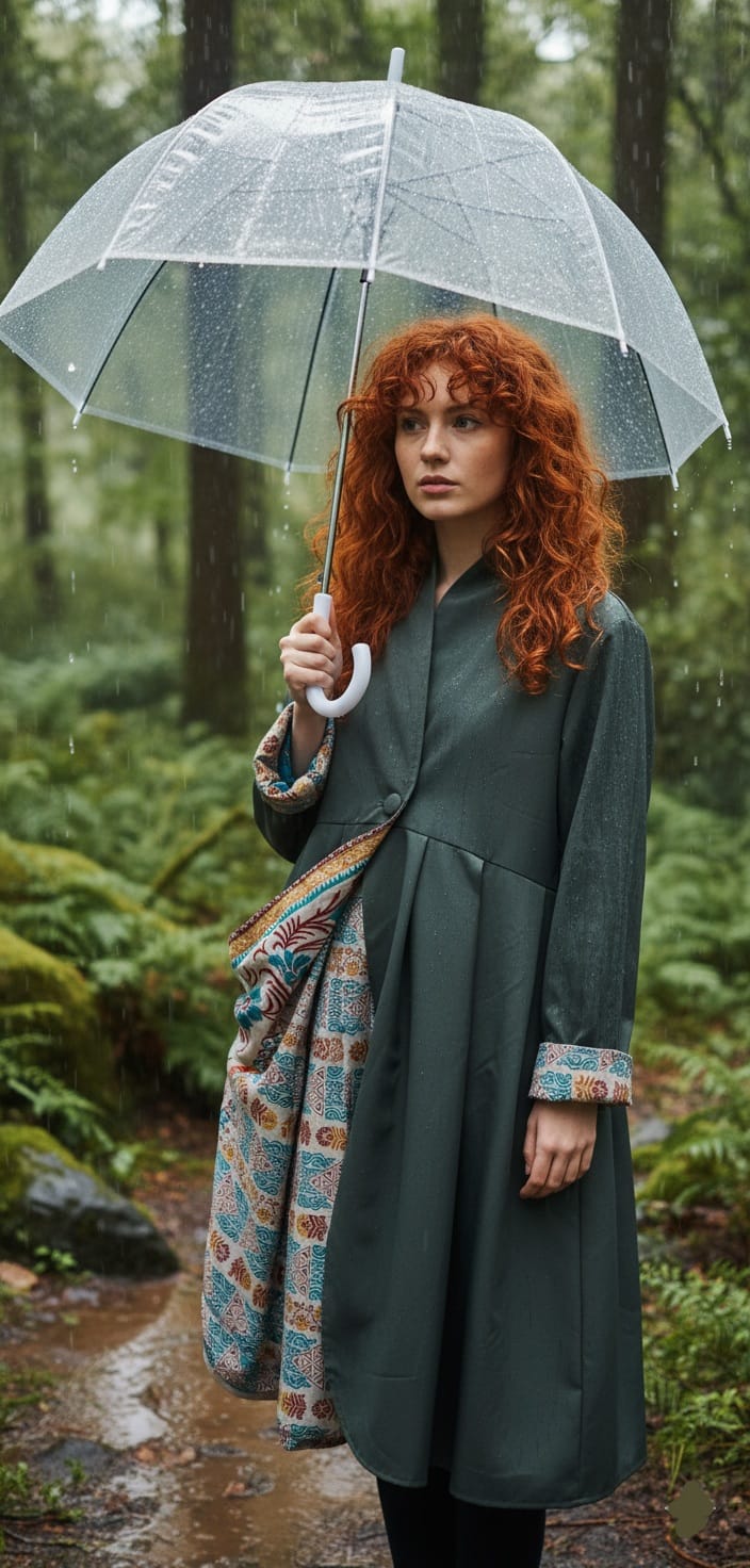 Abrigo impermeable con el forro interior de seda saree. Tiene un solo botón delantero como cierre, el cuello es alto que se vuelve ensañando la seda saree de su interior al igual que los puños. Este abrigo da una sensación de elegancia con sus tablas en la parte trasera, versátil tanto para mujeres con caderas mas anchitas como para las mas delgaditas.