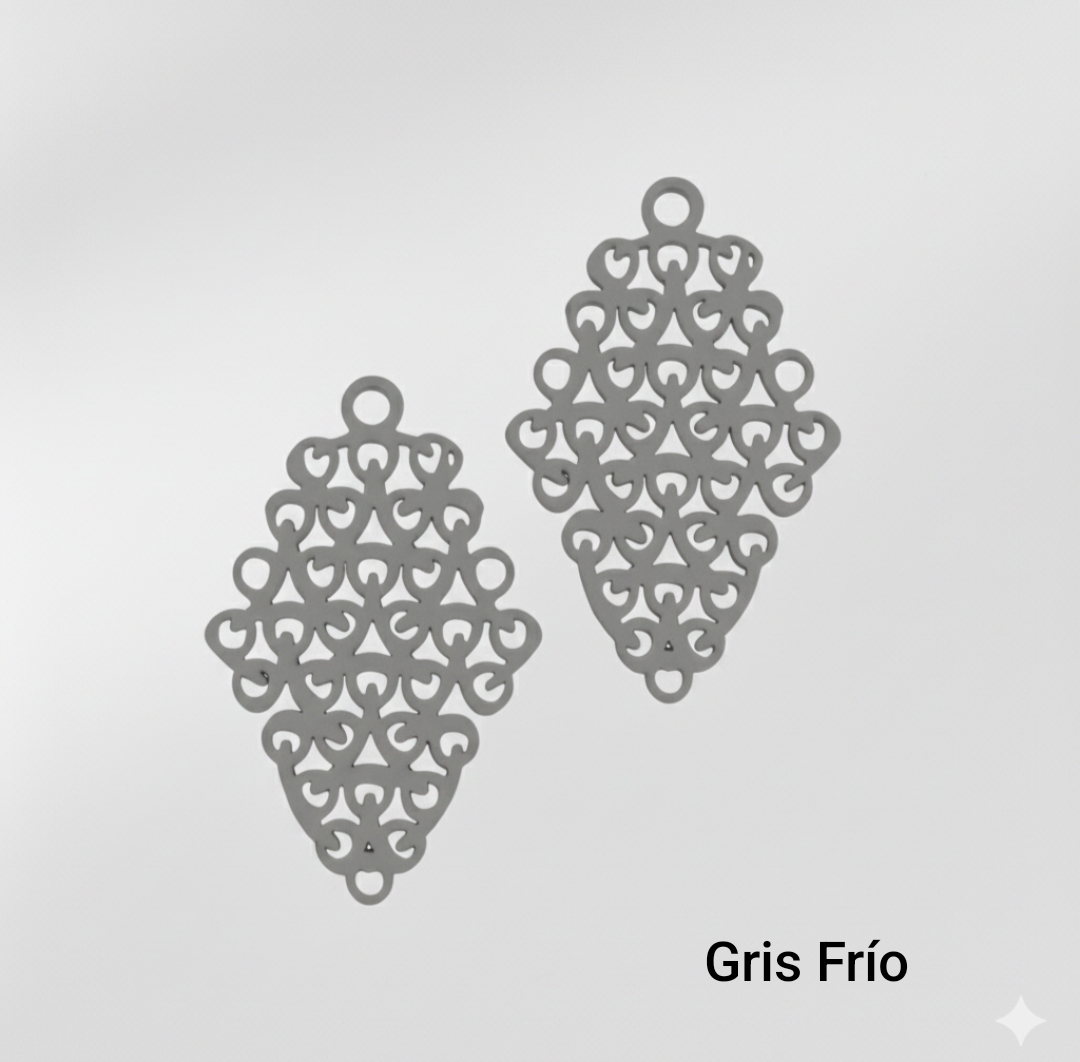 Este modelo concretamente, se llama modelo “Rondo”, tiene estructura de rejilla formando un rombo, las medidas aproximadamente son 6 x 5cm.