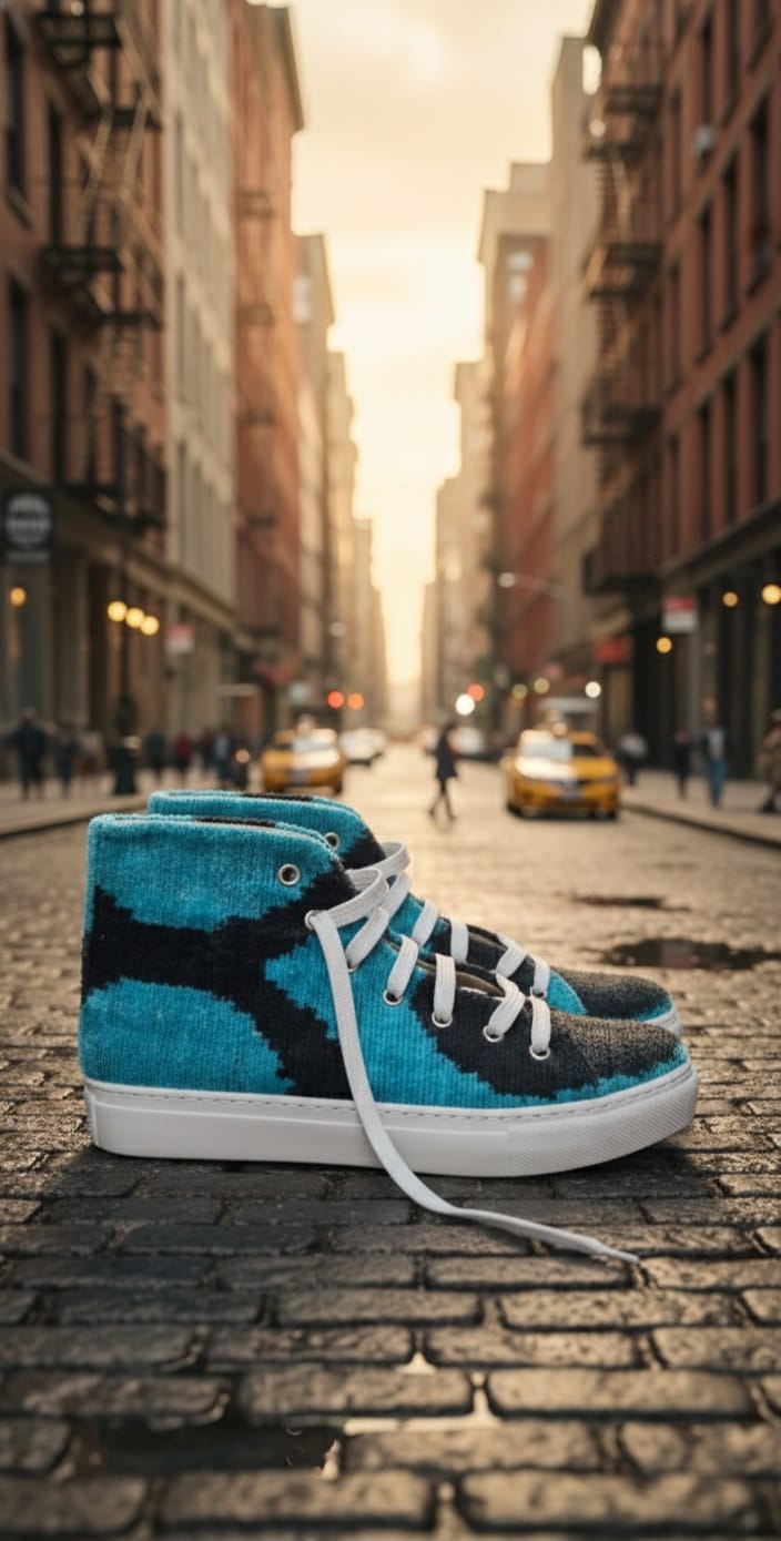 SNEAKERS TERCIOPELO IKAT NEGRAS VERDE Y AZUL
