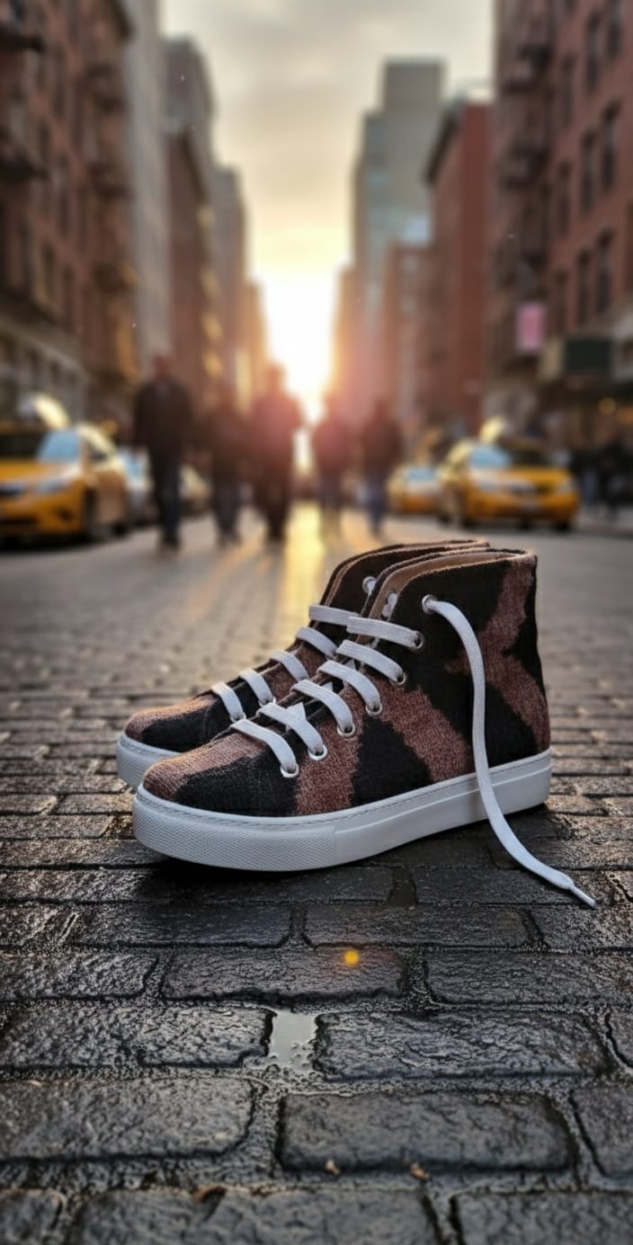Sneakers de terciopelo Ikat turco y su interior de piel. La suela es de goma muy ligera. Modelos exclusivos elegidos y seleccionados los estampados por Coco India y hechos únicamente para nuestra firma.