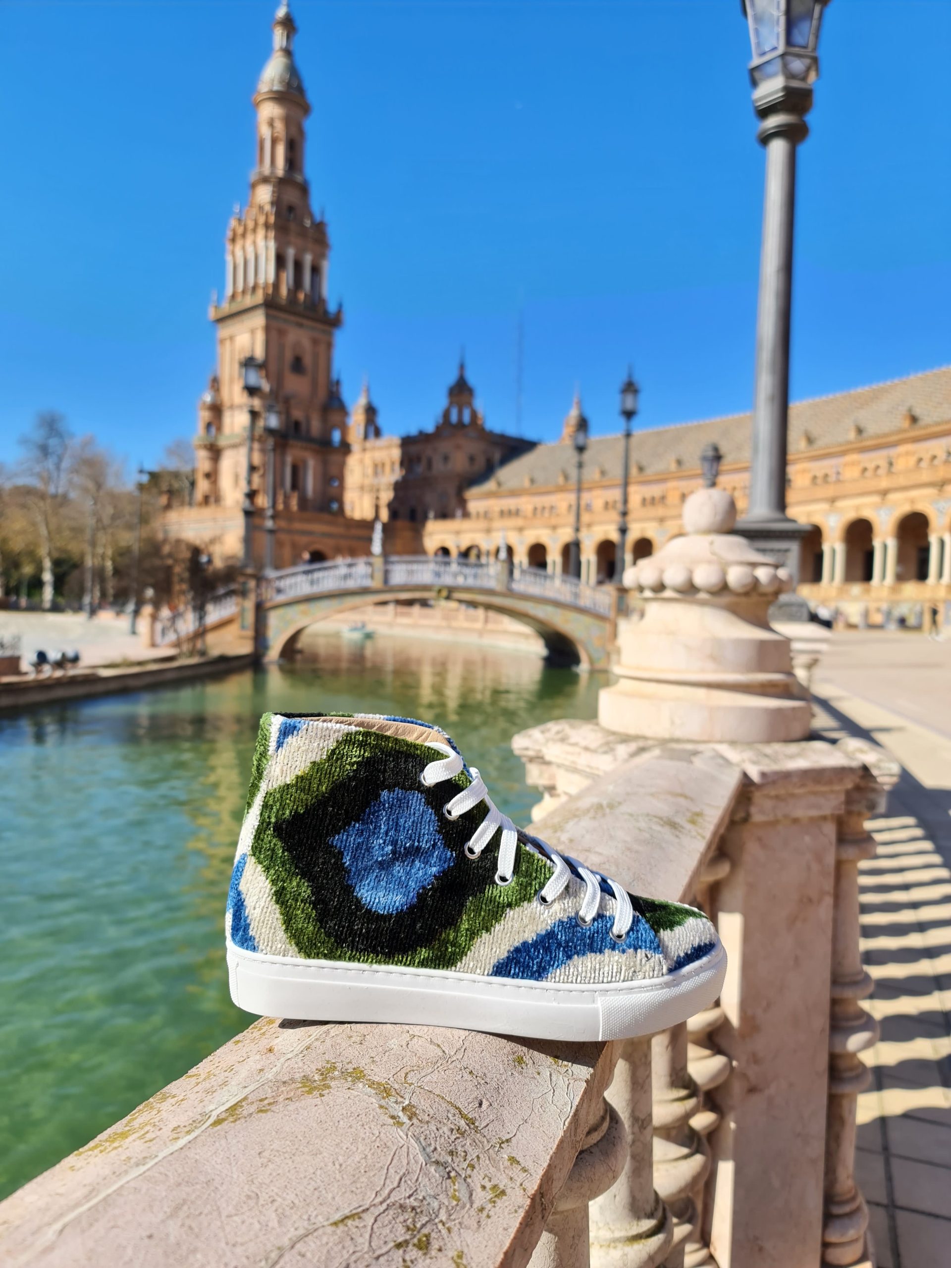SNEAKERS TERCIOPELO IKAT VERDE AZUL Y NEGRO