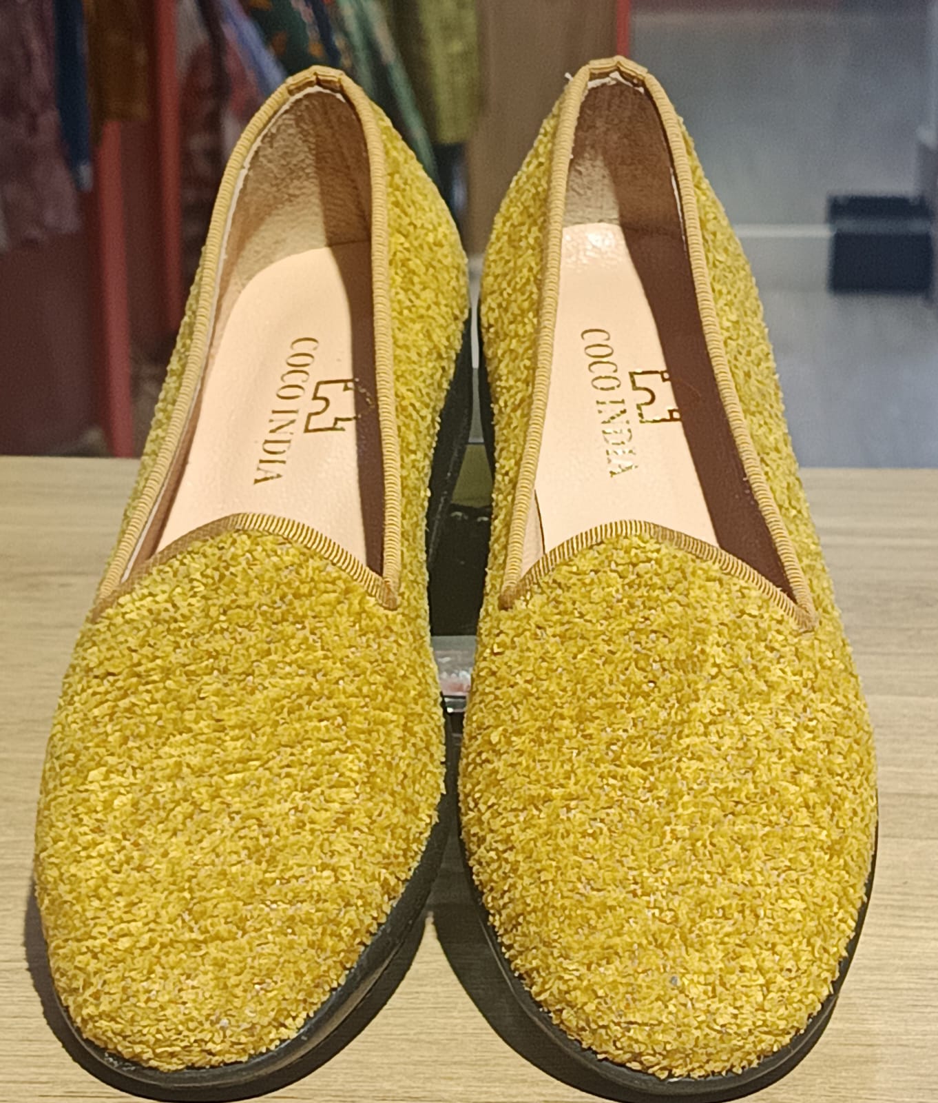 Zapatos kilim turcos, de color pistacho, realizados a mano en Turquía, en exclusiva para Coco India.