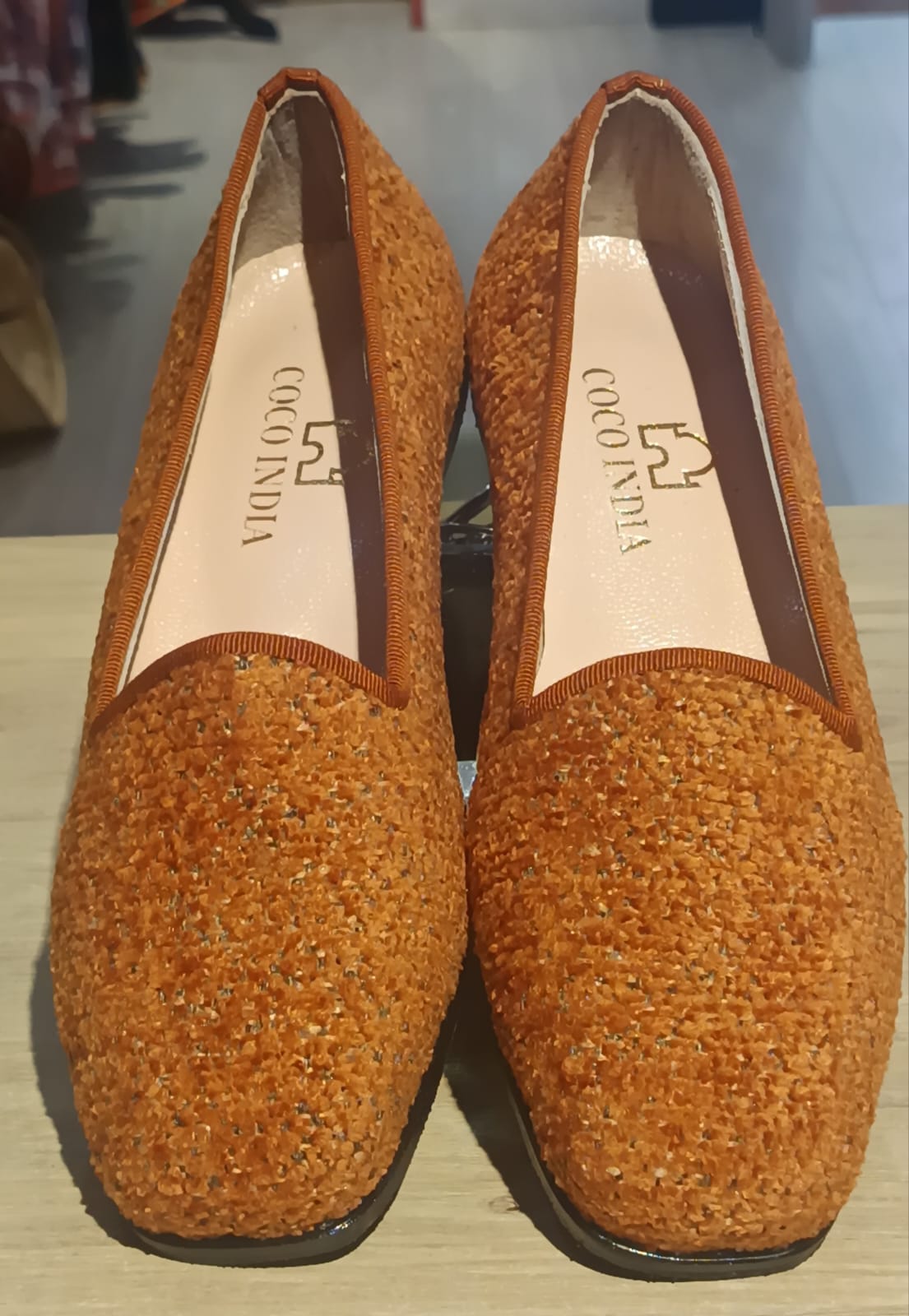 Zapatos kilim turcos, de color caldera, realizados a mano en Turquía, en exclusiva para Coco India.