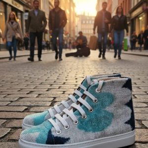 SNEAKERS TERCIOPELO IKAT VERDE AZUL Y NEGRO