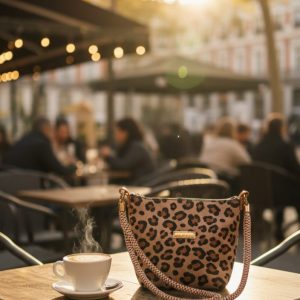 BOLSO TERCIOPELO GEOMETRICO EN TONOS TIERRA