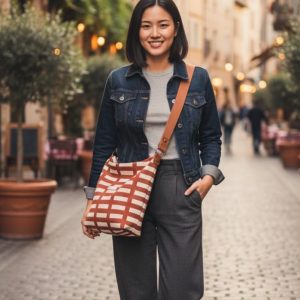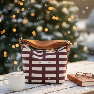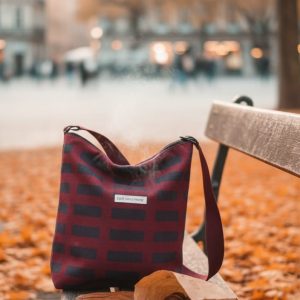 BOLSO TERCIOPELO RAYAS BURDEOS Y BLANCO