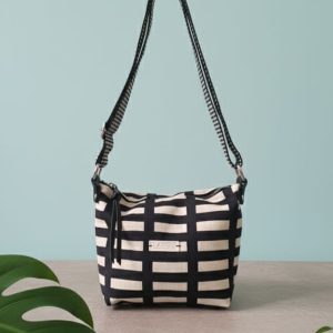 BOLSO TERCIOPELO RAYAS BLANCO Y NEGRO